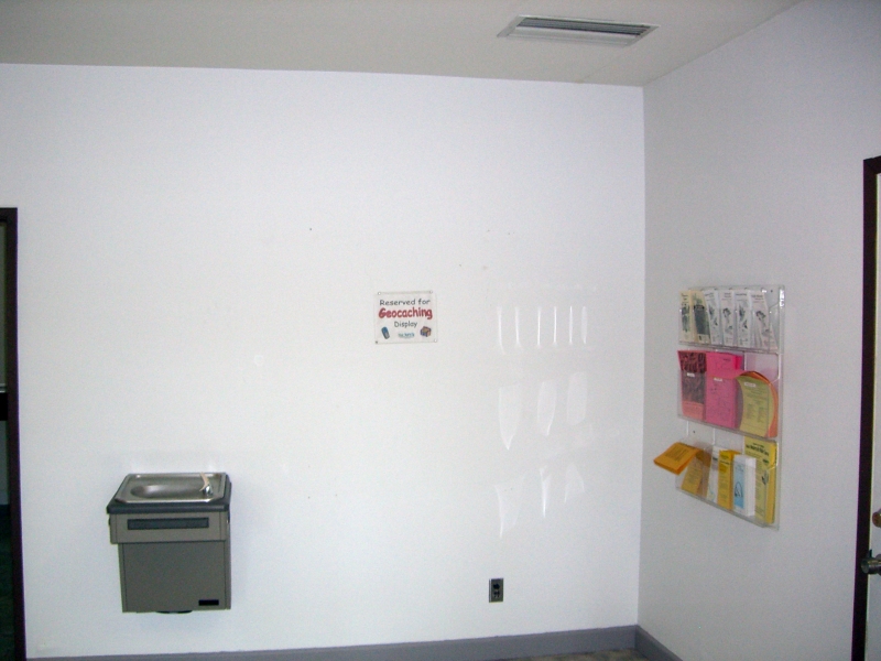 Rich was able to recruit fellow geocacher Dan Baldenweck (geocaching name: Didg Guy) to assist in the project. They set their sites on a section of blank wall in the learning center between to the water fountain and the park brochures.