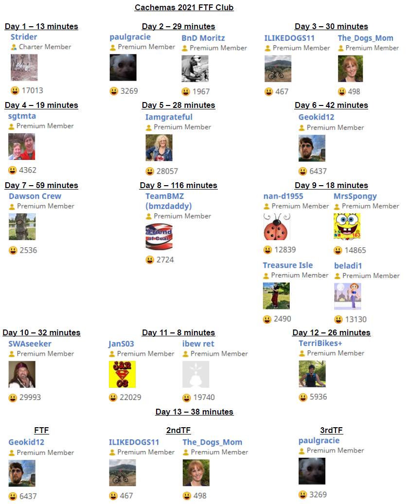 This year, there will be a Bonus Cache on December 31st. EVERYONE is eligible to FTF the bonus whether or not you have FTFed a Cachemas hide. This cache can only be found by using all the codes inside of the container of each daily cache. Keep these codes and use them to solve the location of the Bonus cache which will publish on the final day, December 31st. The Bonus solution will be included in the final day Cache description and I am promised, it is not a difficult solution. We are publishing the Bonus 7 days after the 12th day of Cachemas in order to give cachers time to acquire all the 12 codes.
